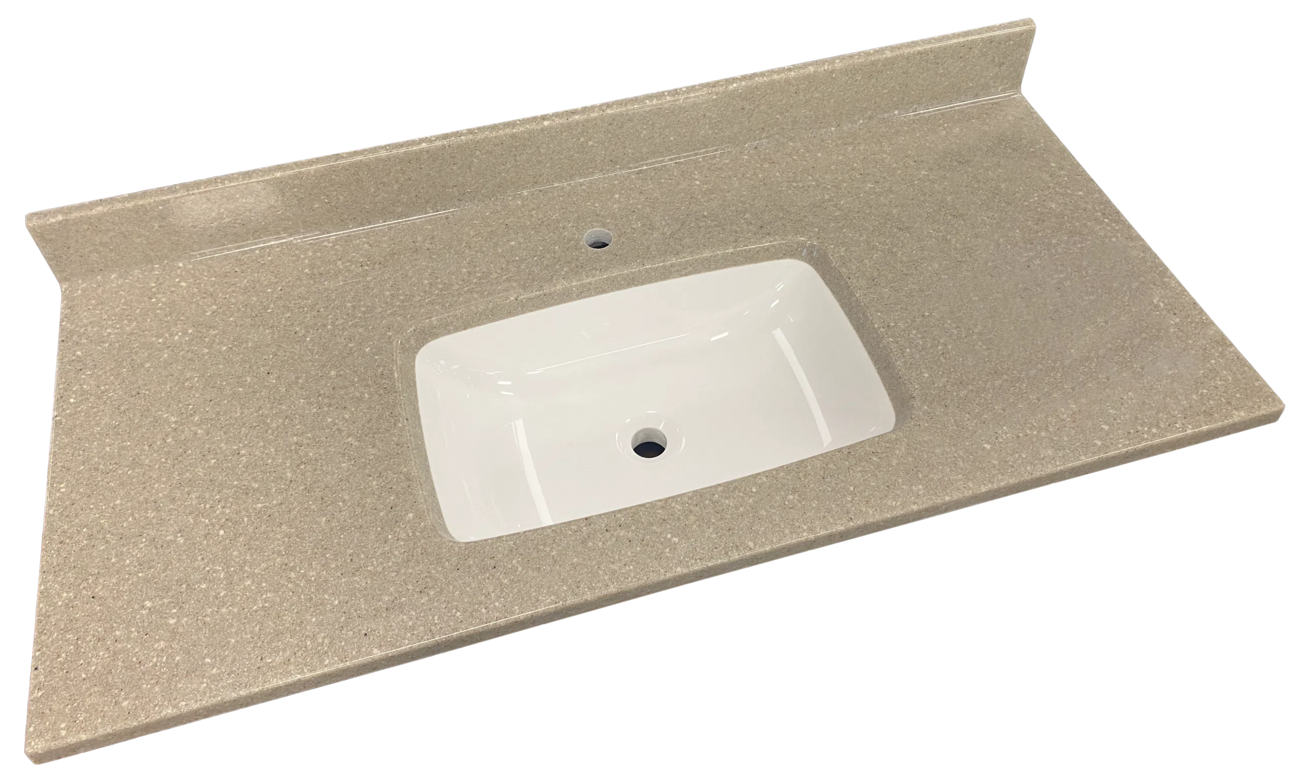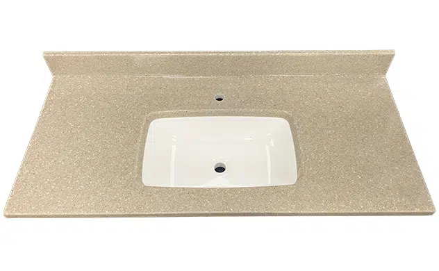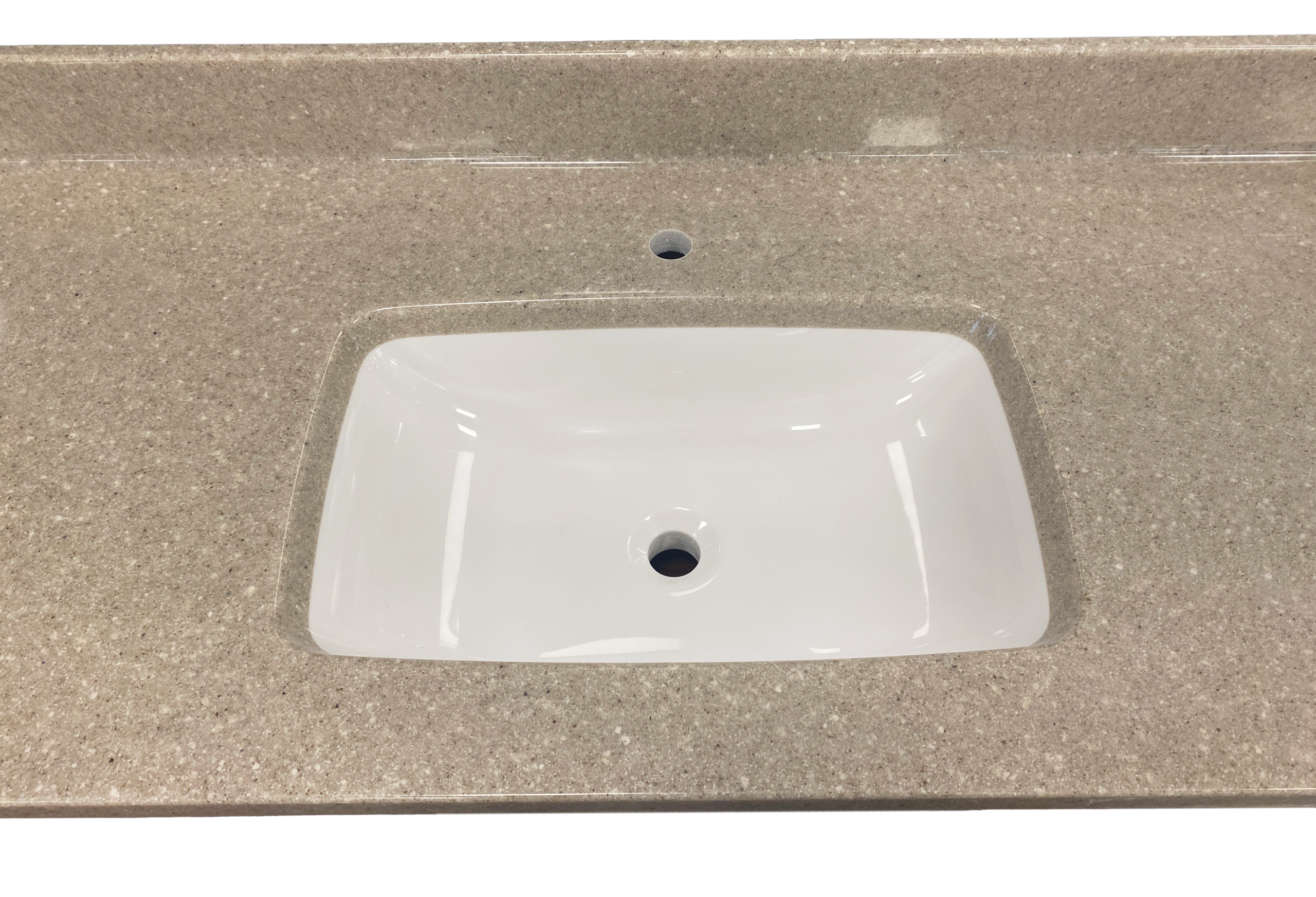 The bowl can be centered or offset, and the faucet holes can be drilled to meet your specifications. Multiple bowls are also available. Every vanity top is made to order and is made to your exact needs.