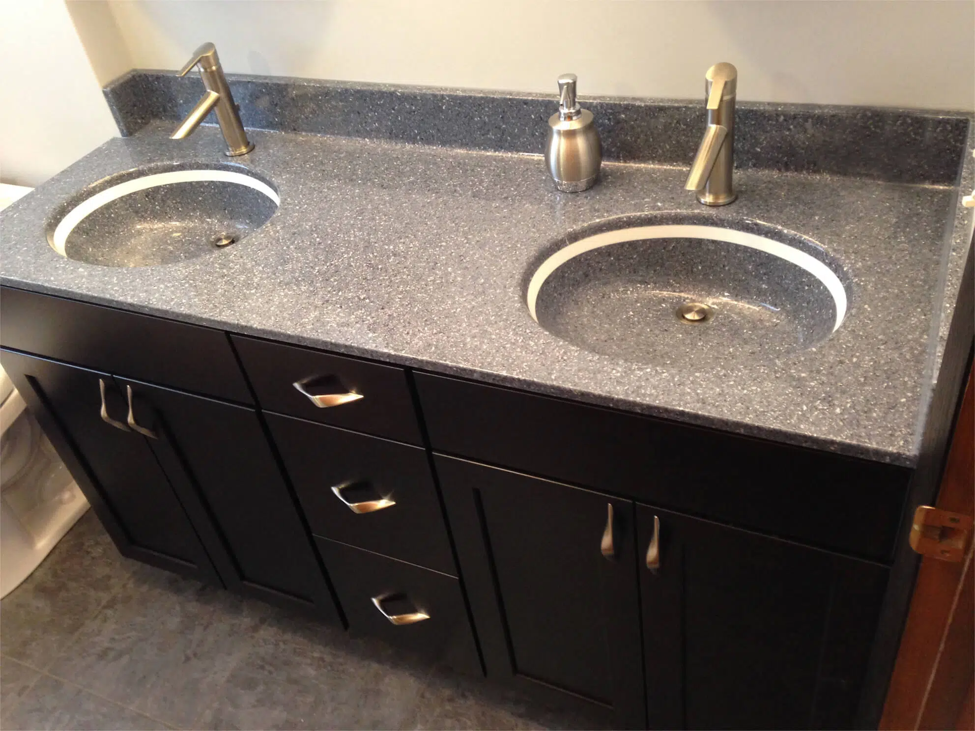 The bowl can be centered or offset, and the faucet holes can be drilled to meet your specifications. Multiple bowls are also available. Every vanity top is made to order and is made to your exact needs.