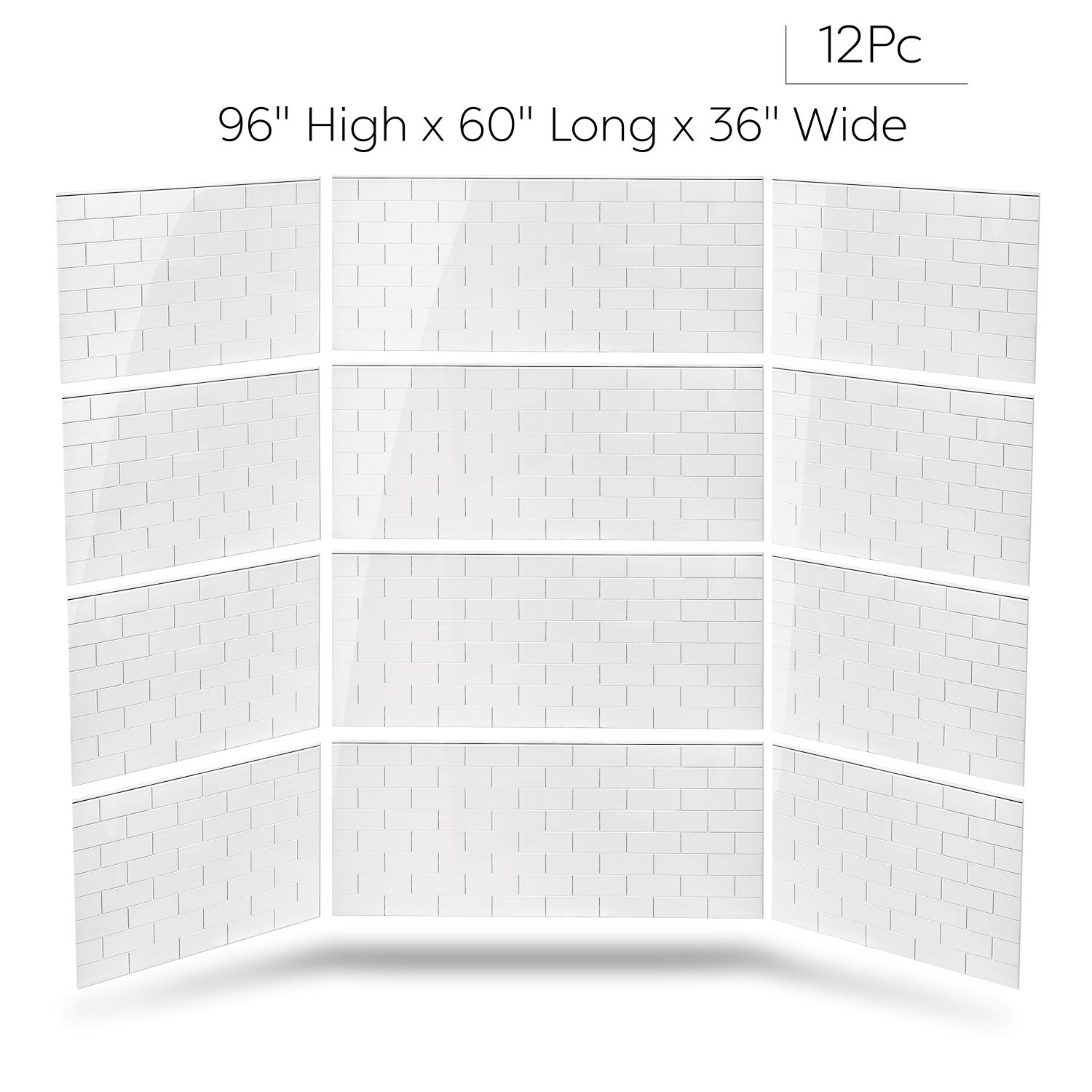 SMC 12-Piece Shower Panel Kit – Subway Pattern, White Glossy Finish