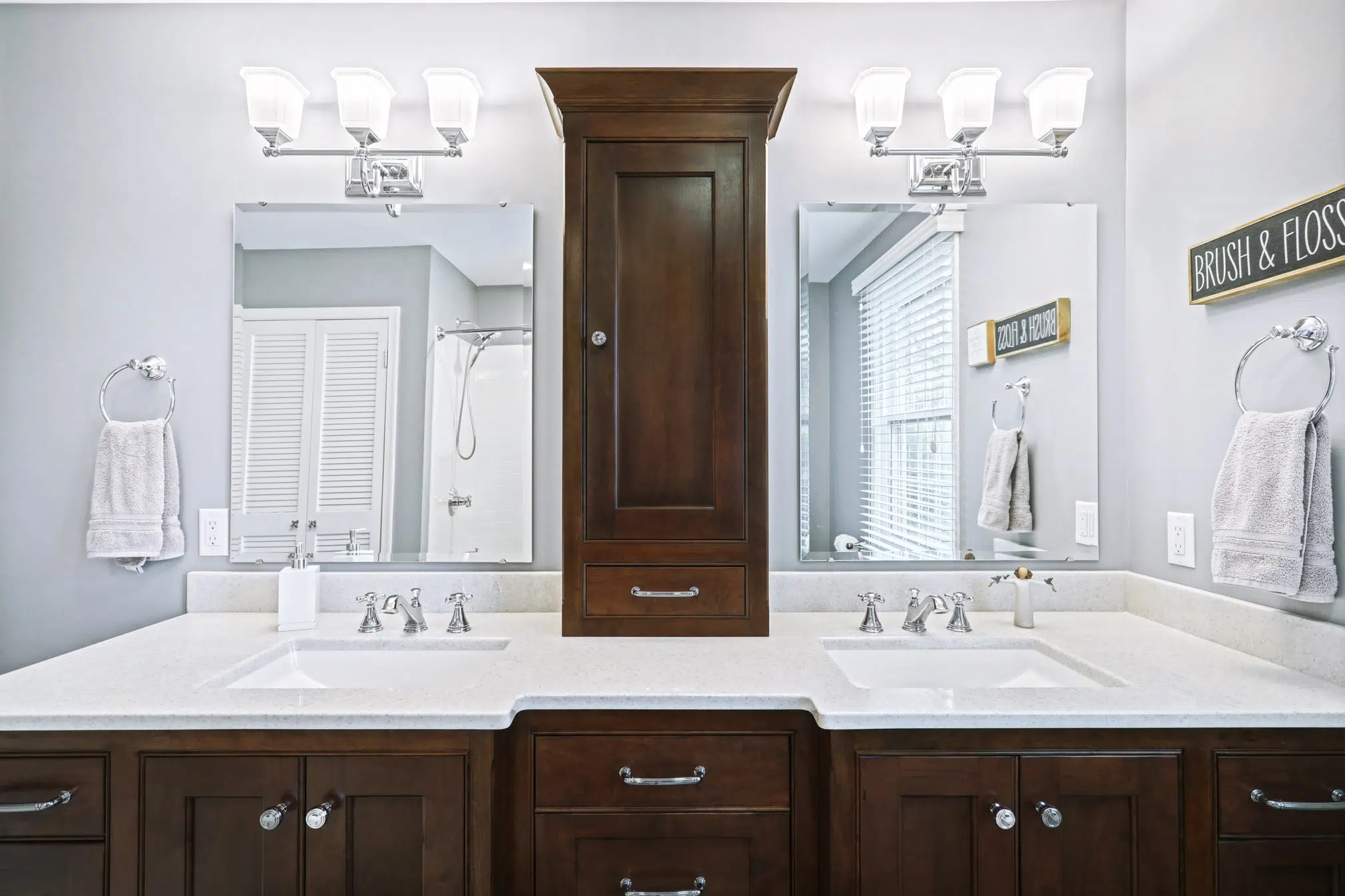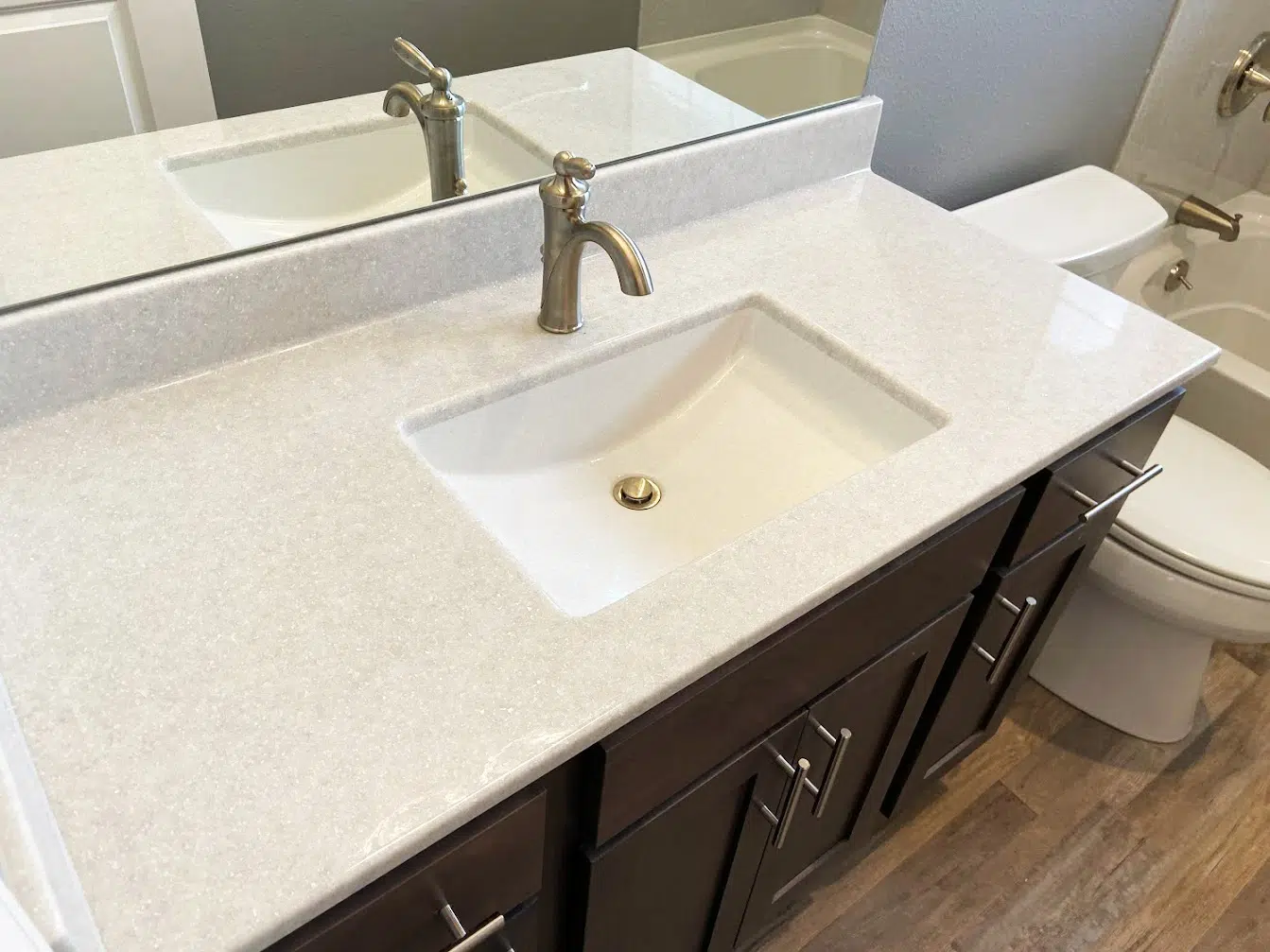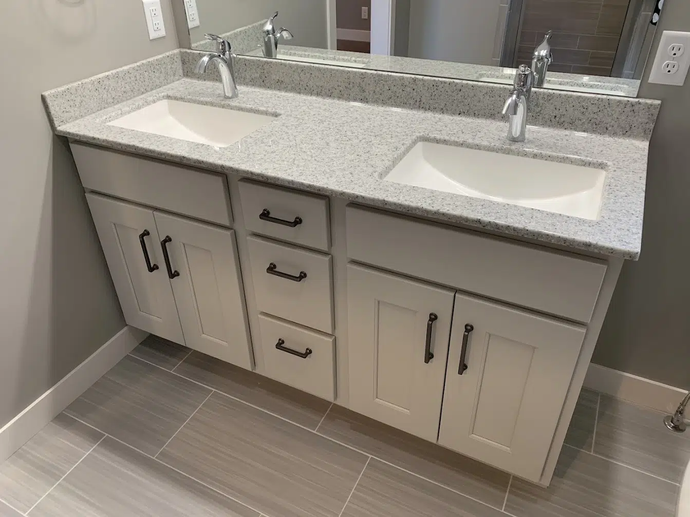 The bowl can be centered or offset, and the faucet holes can be drilled to meet your specifications. Multiple bowls are also available. Every vanity top is made to order and is made to your exact needs.
